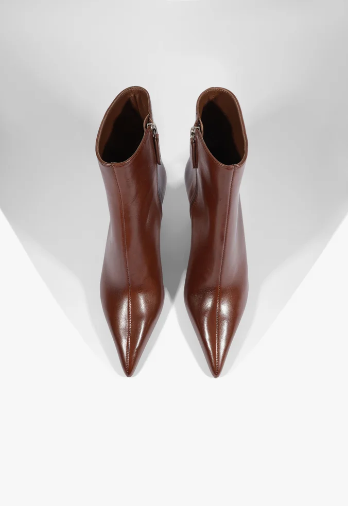 Bota de cano curto com salto alto e design elegante, ideal para produções modernas e sofisticadas. O modelo traz linhas clean e presença marcante, funcionando bem com vestidos, saias ou looks urbanos, garantindo versatilidade e um visual atual para diferentes ocasiões.