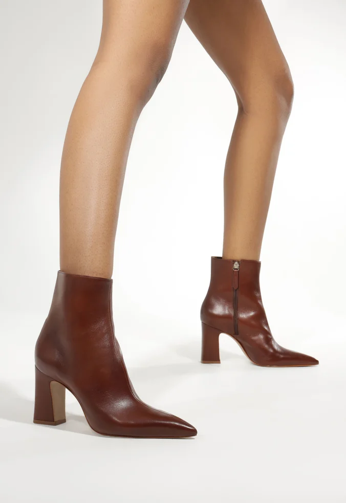 Bota Dressy Salto Bloco Couro Marrom