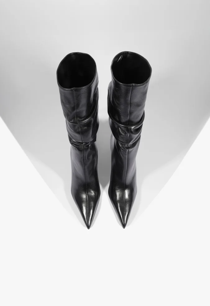 A Bota Harriet em Couro Preta é a tradução perfeita da estética slouchy que dominou as passarelas e o street style internacional. Com um design que une volume, sofisticação e uma dose extra de atitude, ela é o item indispensável para quem deseja um visual