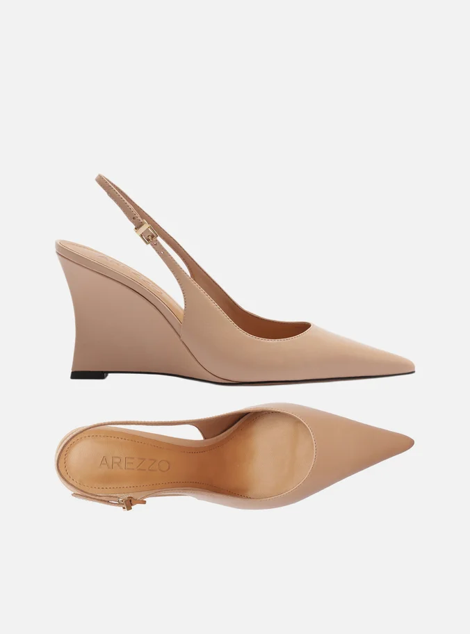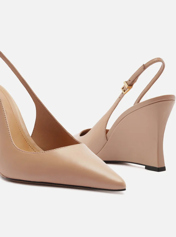 Scarpin Bege Rosado Couro Salto Alto Anabela Slingback
