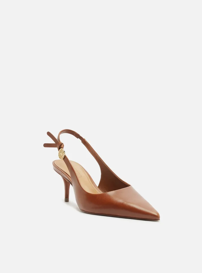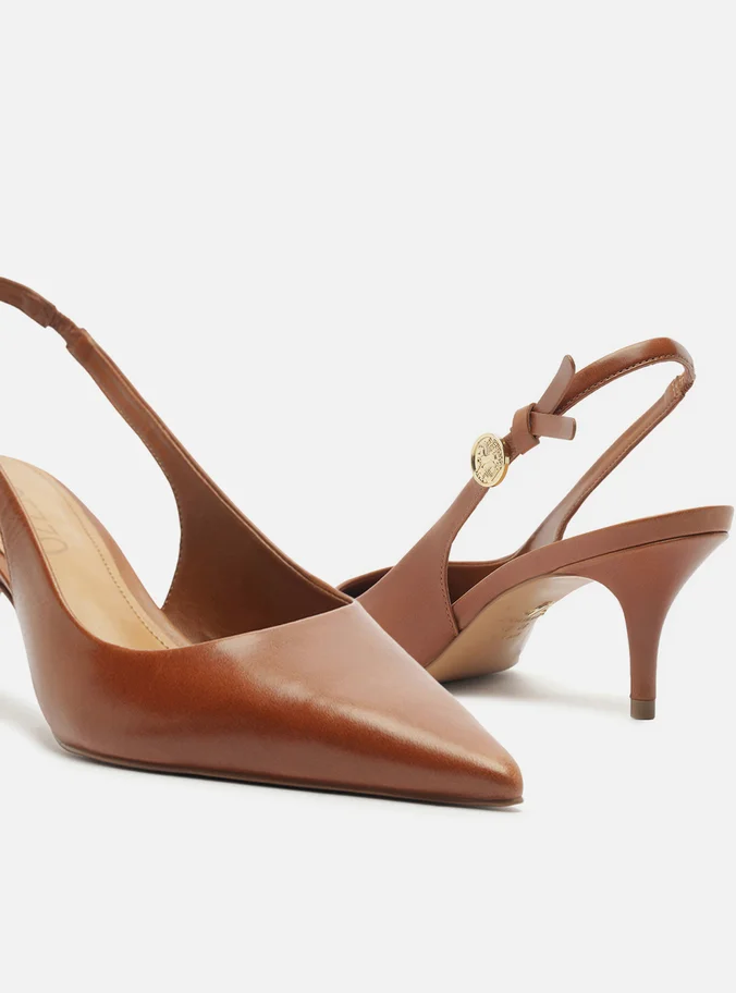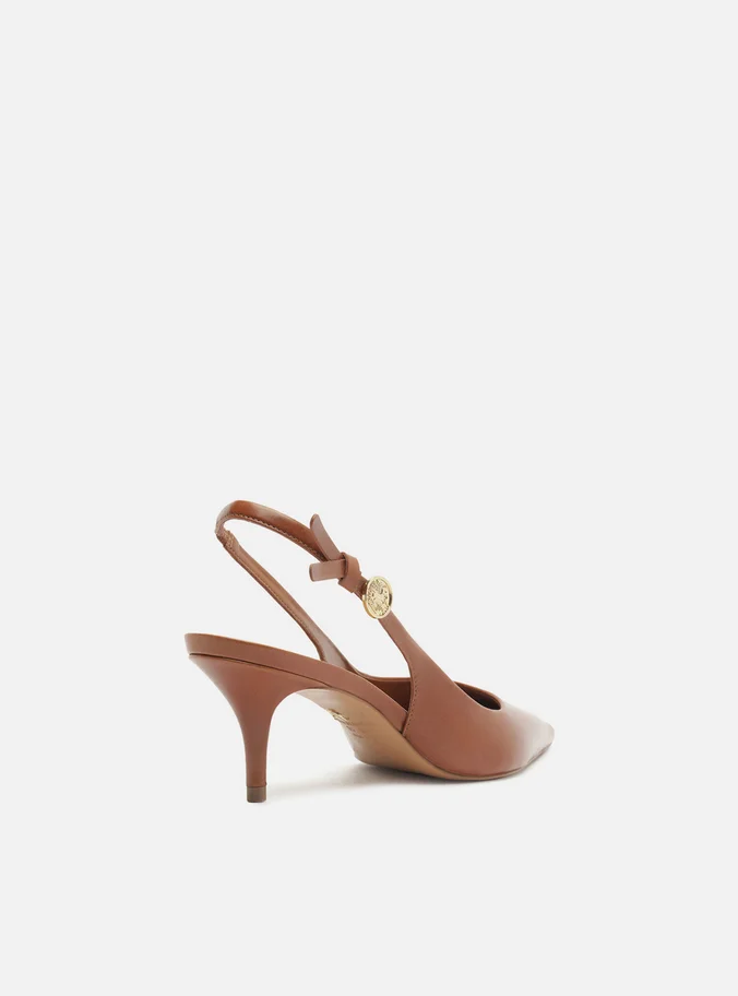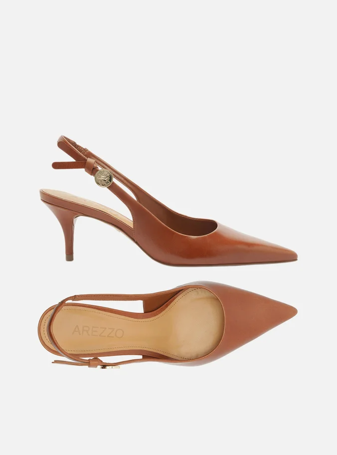Scarpin Marrom Couro Slingback Metal Heritage
