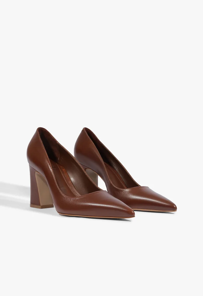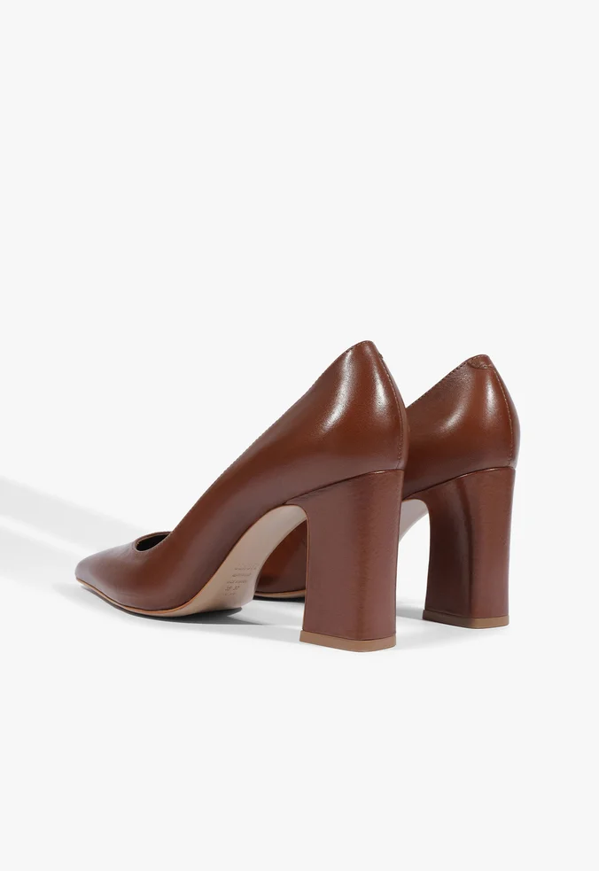 Scarpin Micam Salto Bloco Couro Marrom