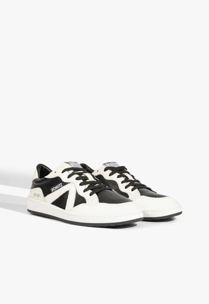 Scarpin Preto Couro Bloco Semi Aberto Tiras